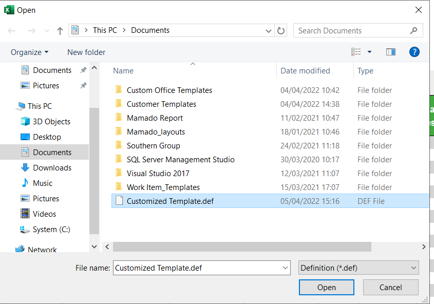 This definition can be loaded onto a data set entered in Excel by selecting File > Load range definition from the Designer.